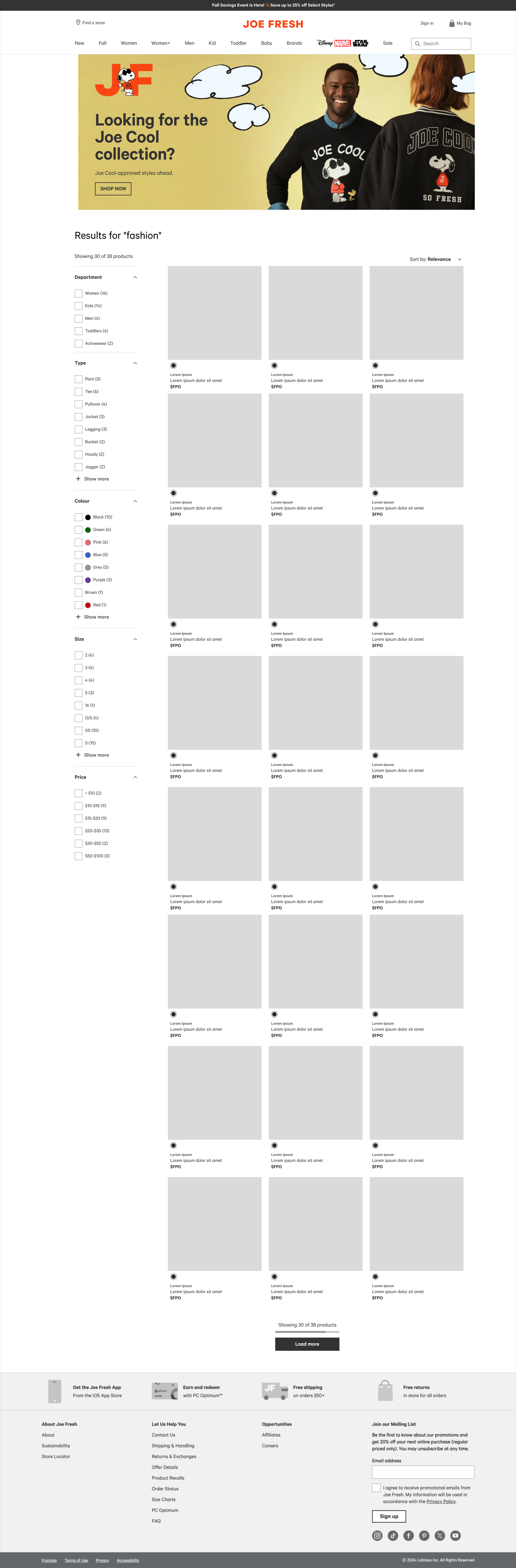 This is the page the consumer will be redirected to when searching a keyword such as “joe cool.”